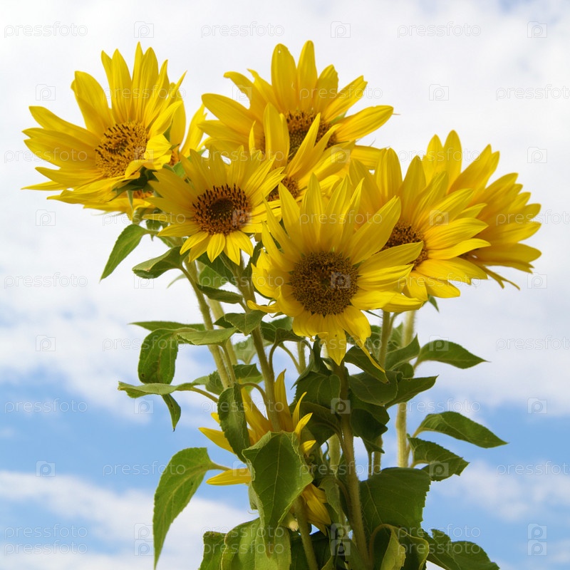 Букет подсолнечников на фоне неба