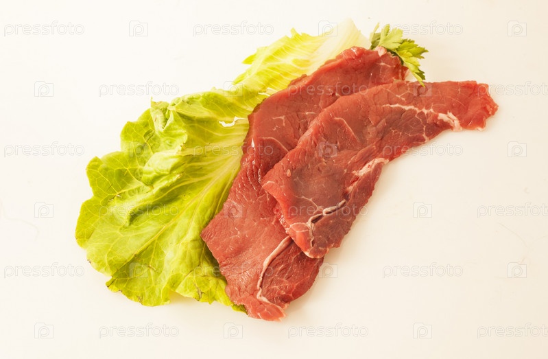Куски сырой говядины