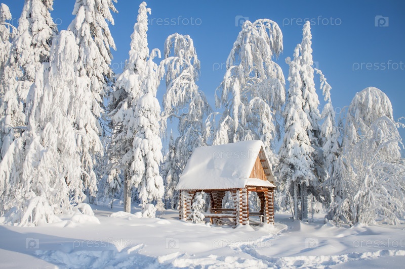 Деревянная беседка в лесу