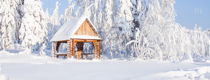 Деревянная беседка в лесу
