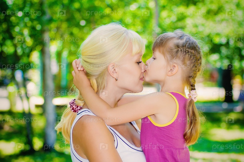 Молодая мама с дочкой в летнем парке