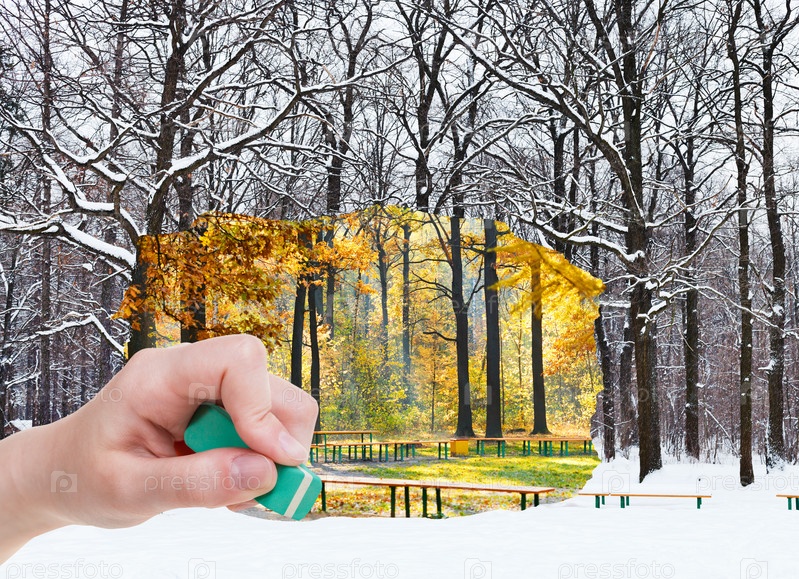 Ластик стирает осенью и зимой появляется лес