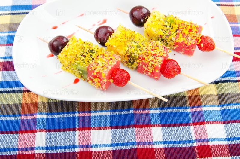 Фруктовый десерт на тарелке