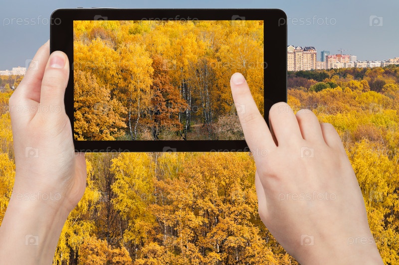 Осений лес на планшетном ПК