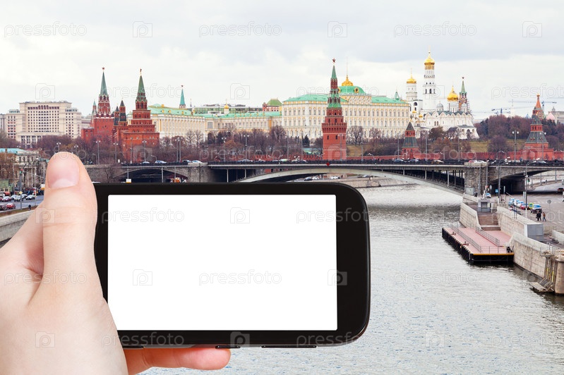 Смартфон с вырезанным экраном и Москва-река