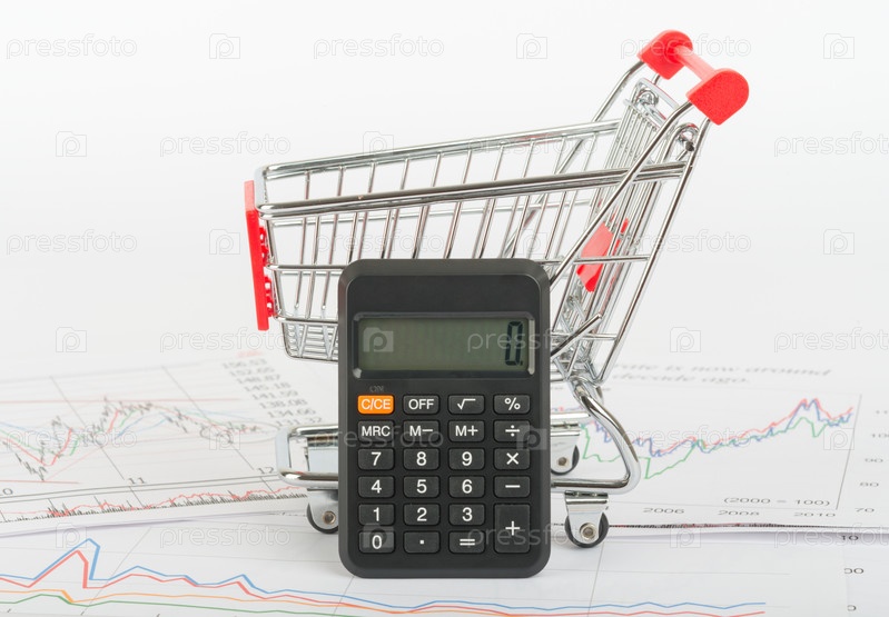Продуктовая тележка и калькулятор