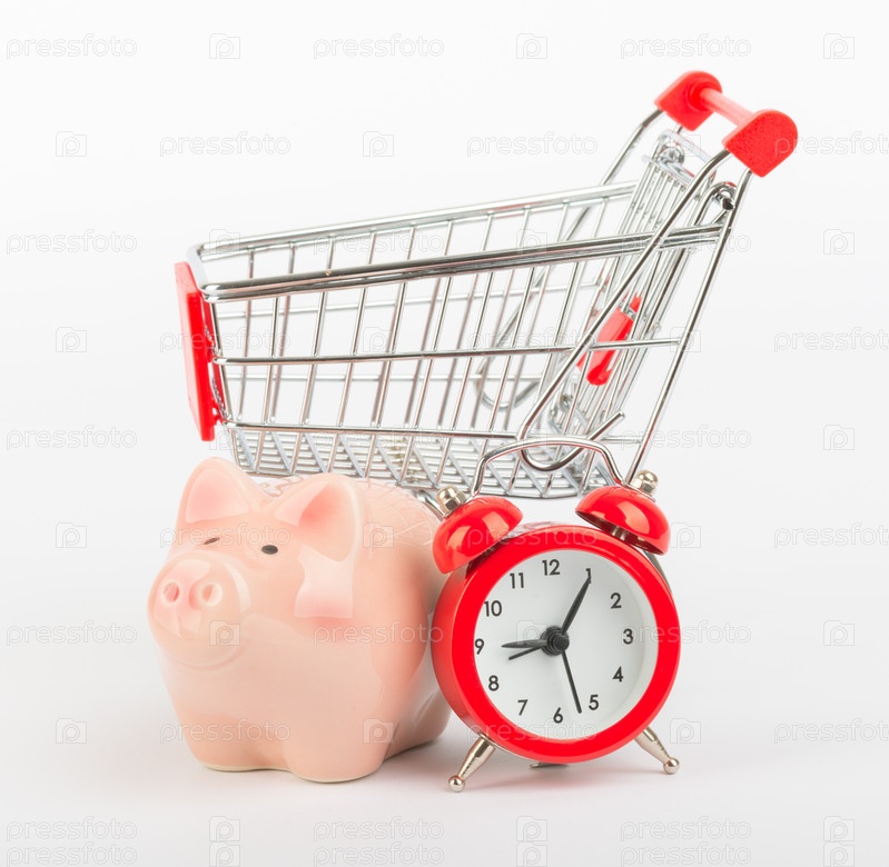 Копилка, часы и тележка