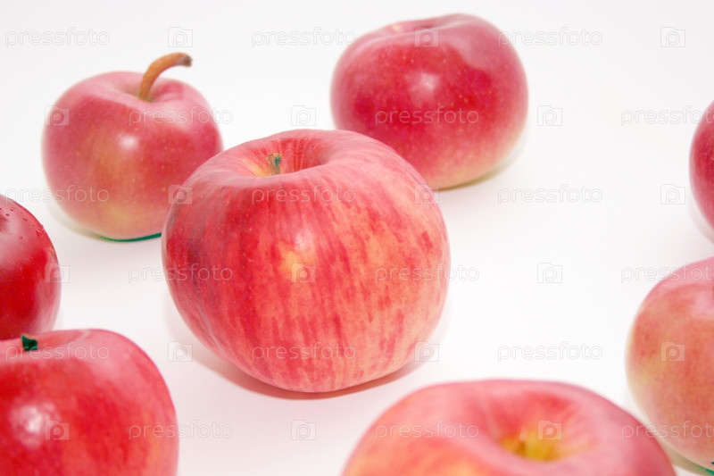 Красные яблоки на белом фоне