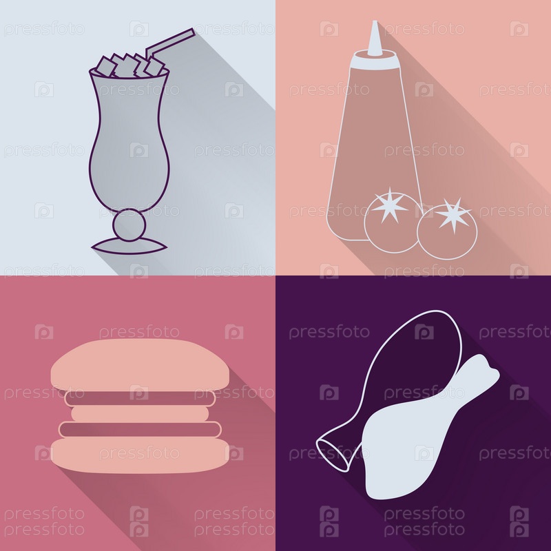 Набор из четырех значков цветными фаст-фуд