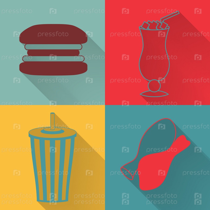 Набор из четырех значков цветными фаст-фуд