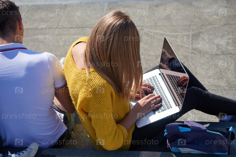 Студенты снаружи сидят на ступеньках