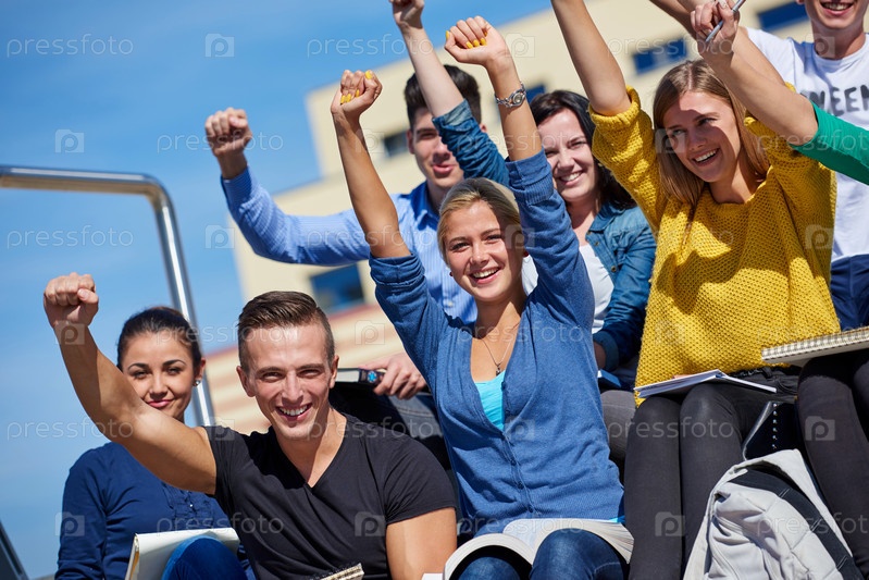 Студенты за пределами сидя на шагах
