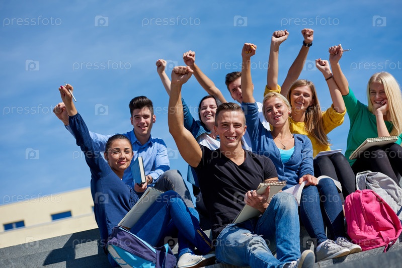 Студенты за пределами сидя на шагах