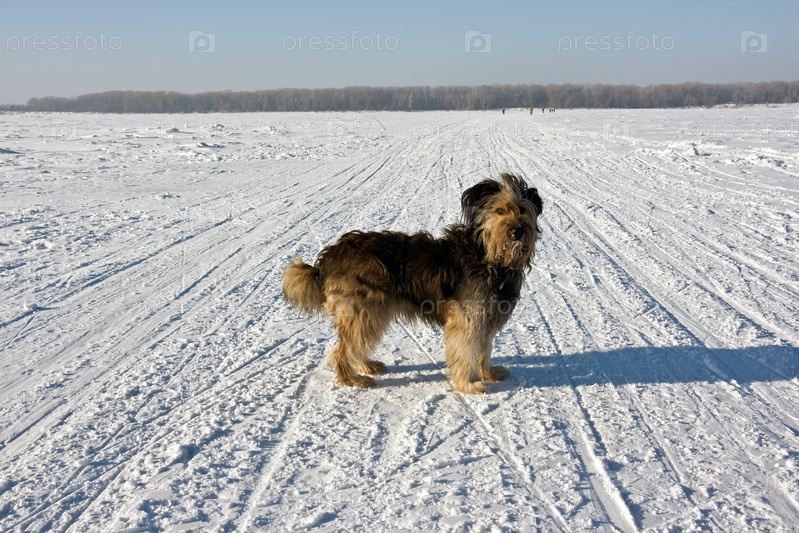 Собака стоит на снегу