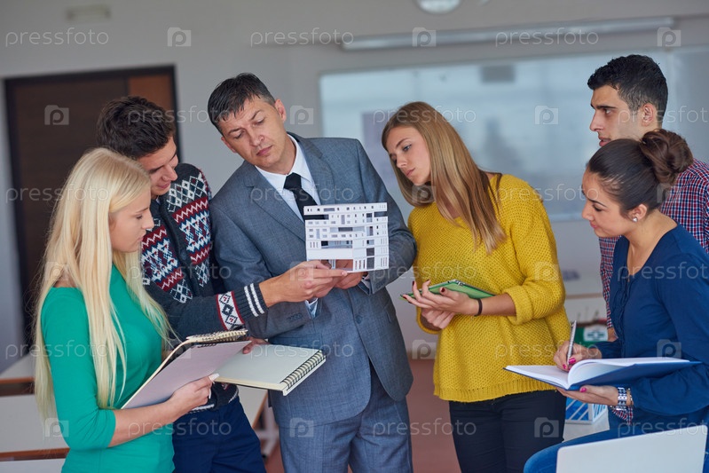 Группа студентов, работающих с учителем на дом модели