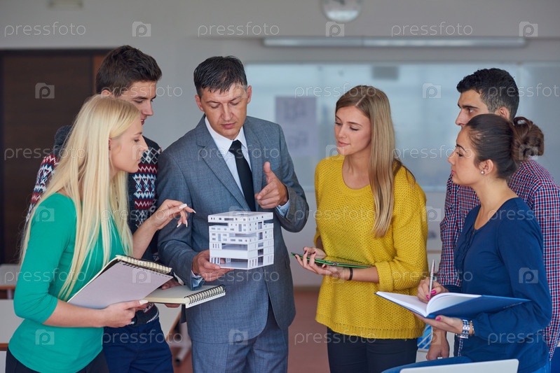 Группа студентов, работающих с учителем на дом модели