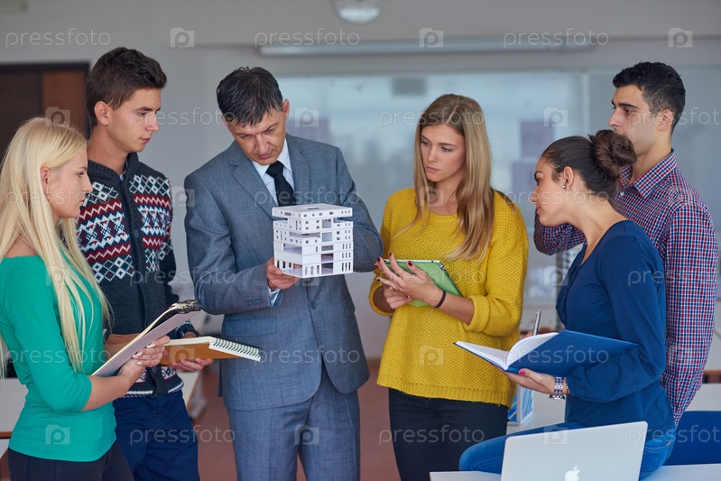 Группа студентов, работающих с учителем на дом модели