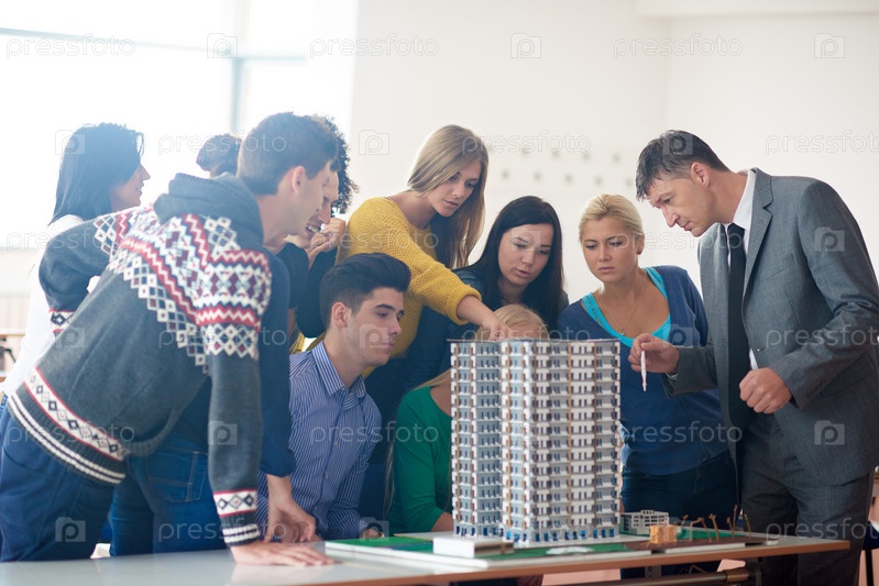 Группа студентов с учителем в классе