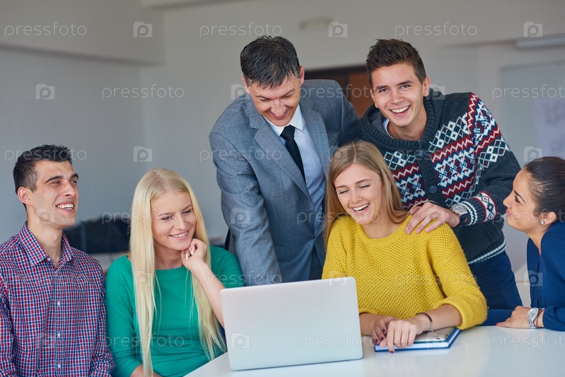 Группа студентов, получая знания от учителя