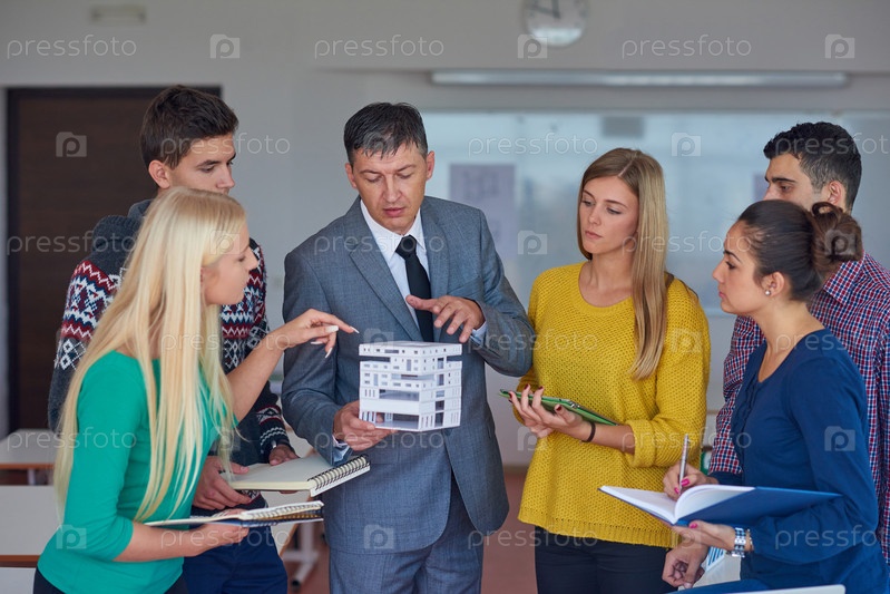 Группа студентов, работающих с учителем на дом модели