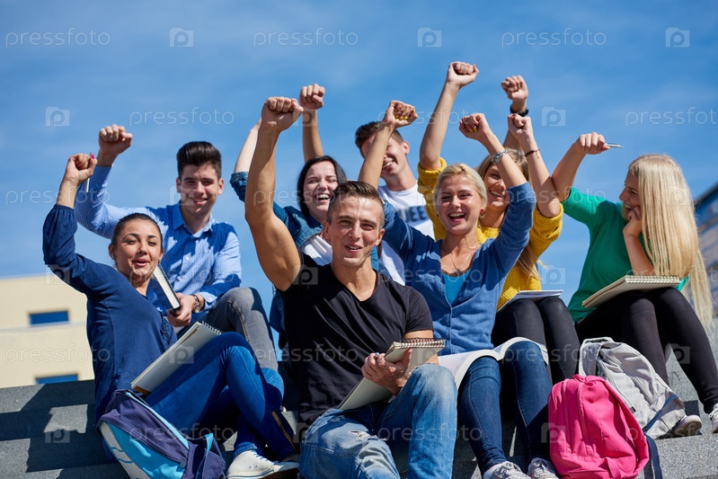 Студенты сидя на ступенях