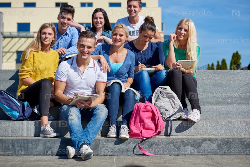 Студенты сидя на ступенях