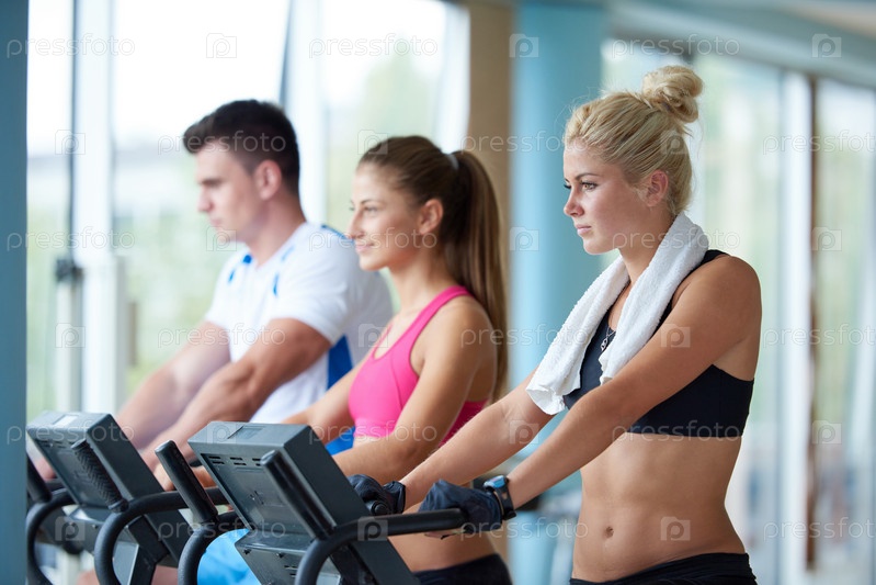Друзья, упражнения на беговой дорожке в яркий современный тренажерный зал