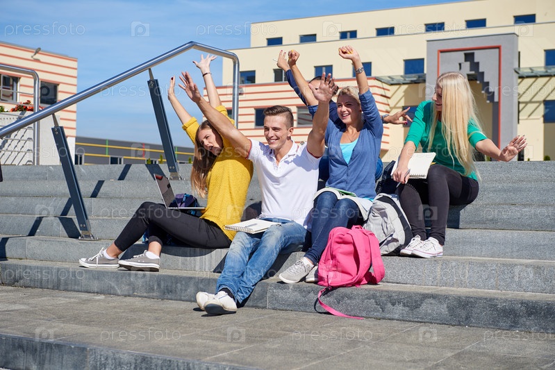 Студенты сидят на ступенях