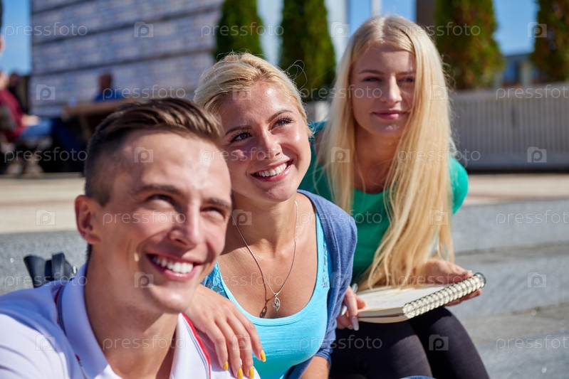 Студенты сидят на ступенях