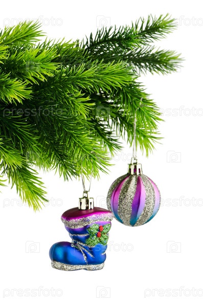 Игрушки на ветке новогодней елки
