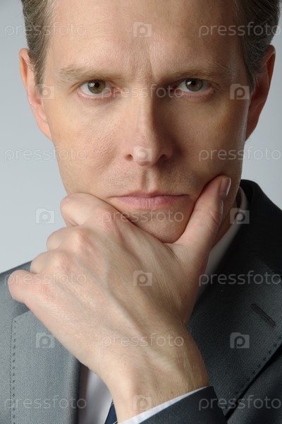 Серьезный бизнесмен на сером