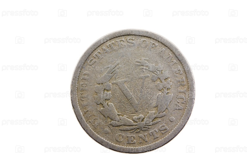 Пять центов Винтаж США, изолированные на белом фоне