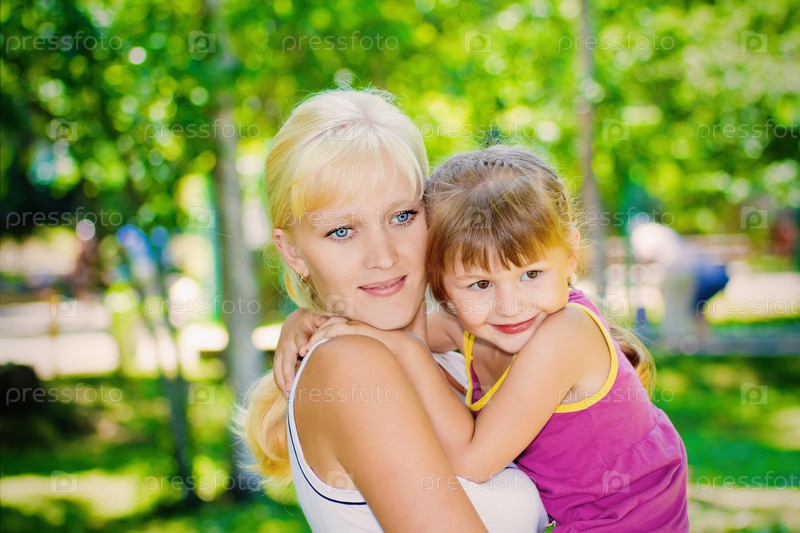 Мама с дочкой в летнем парке