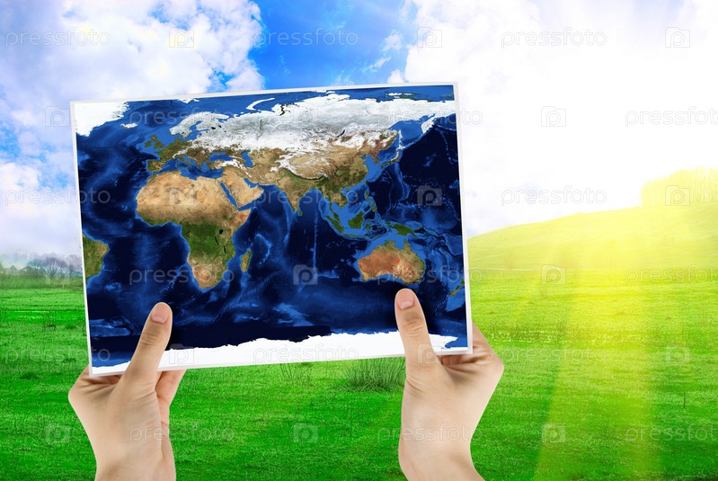 Карта в руках на фоне летнего пейзажа