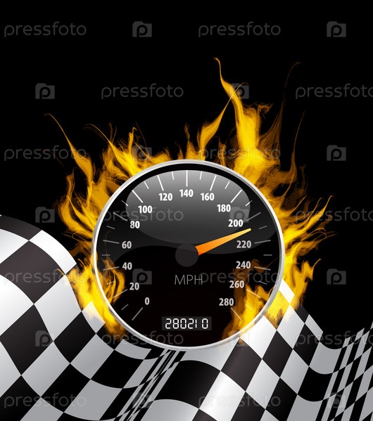 Спидометр в огне на черном фоне