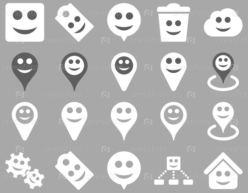 Инструменты, эмоции, улыбки, карта маркеры значков