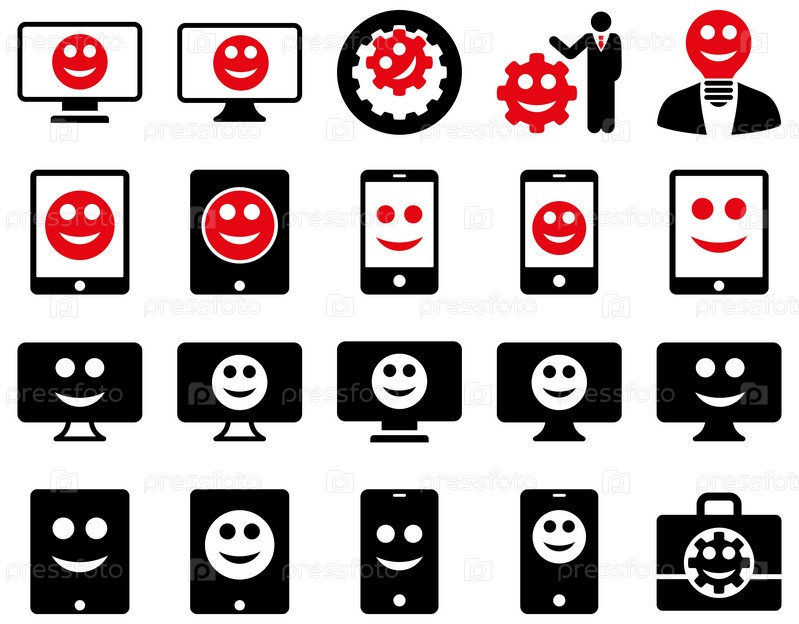 Инструменты, варианты, улыбки, отображает значки устройств