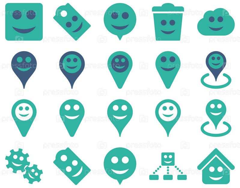 Инструменты, эмоции, улыбки, карта маркеры значков