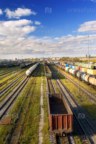 Сортировочная станция с грузовыми поездами