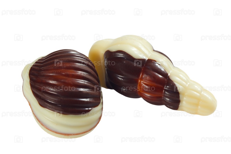 Вкусные шоколадные конфеты на белом фоне
