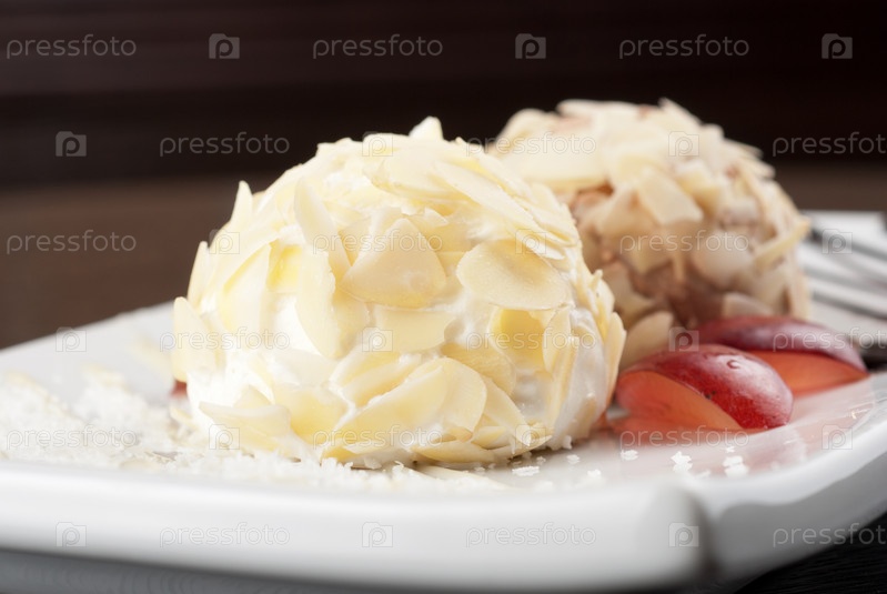 Десерт из мороженого и миндаля