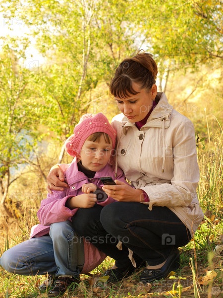Молодая симпатичная женщина с дочерью в осеннем праке
