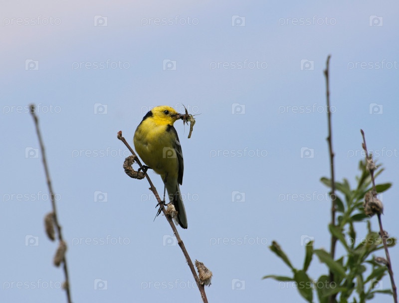 Желтая трясогузка на ветке