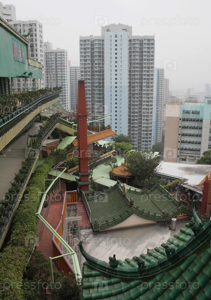 Многоэтажный даосский храм на склоне холма в Гонконге