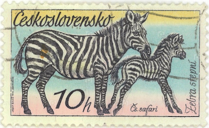 Почтовая марка с изображением зебр