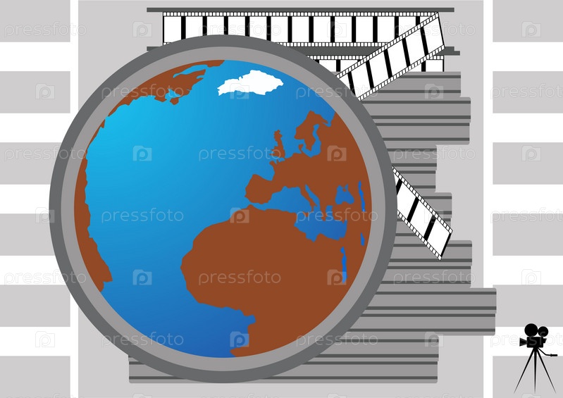 Нарисованный земной шар и кинопленка