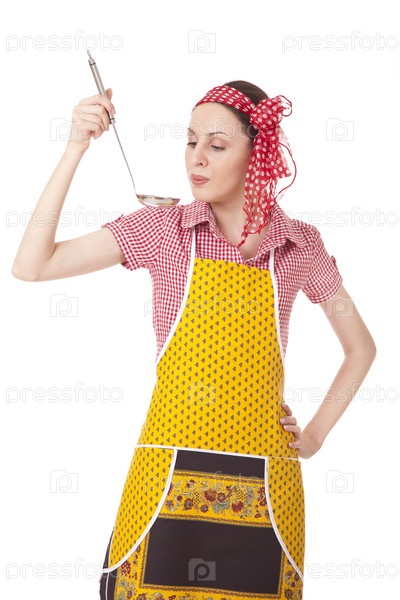 Симпатичная домохозяйка на белом фоне