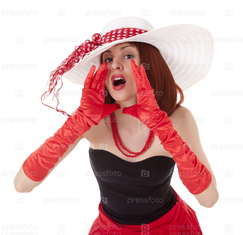 Портрет молодой красивой женщины в шляпе на белом фоне