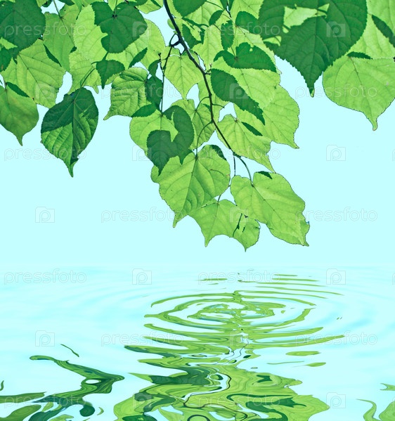 Ветка с листьями у воды