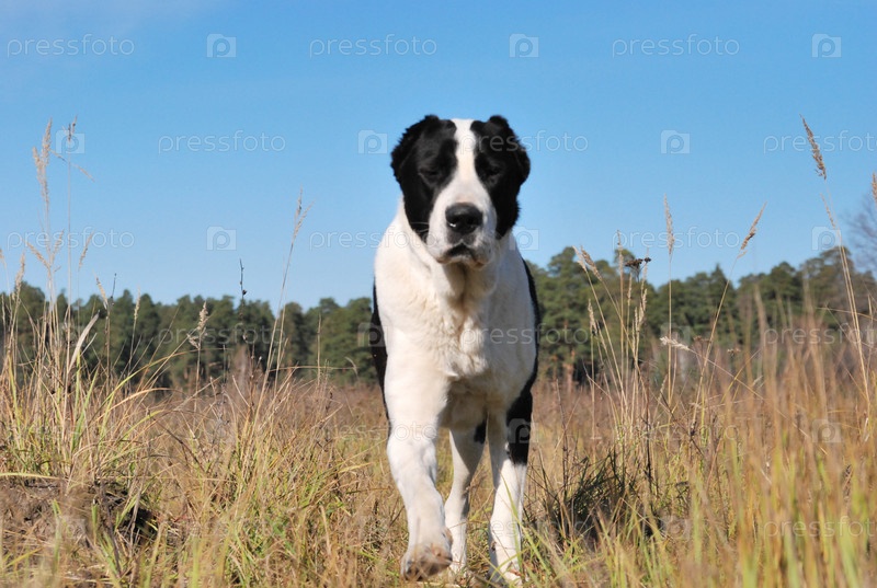 Среднеазиатская овчарка бежит по полю